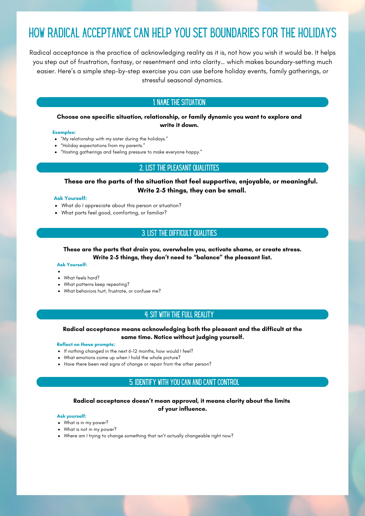 How Radical Acceptance Can Help You Set Boundaries for the Holidays (downloadable exercise)